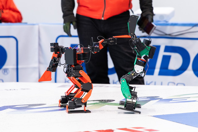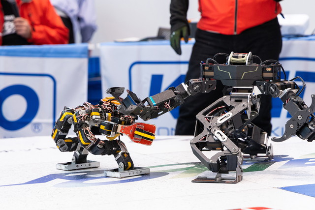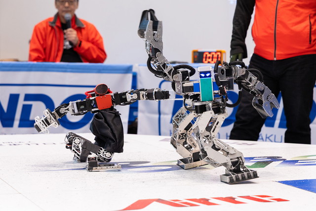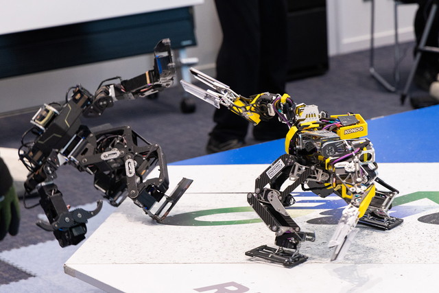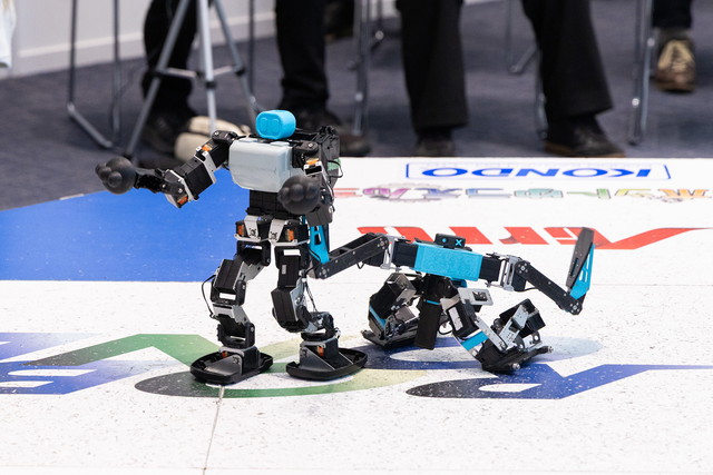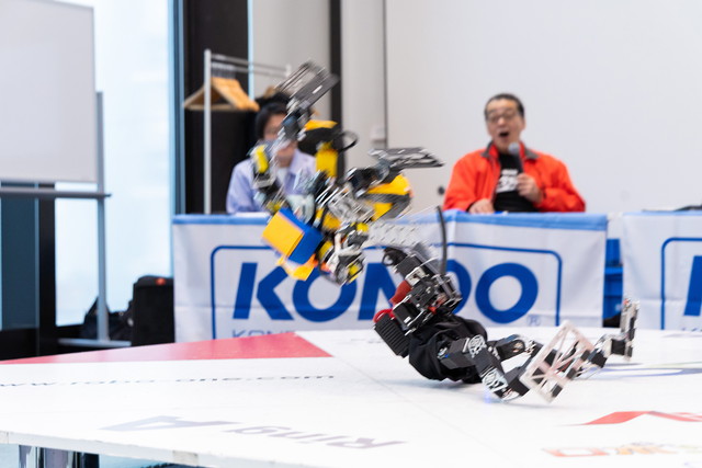 本大会は、二足歩行ロボットによるバトル大会です。KONDOのロボットキットや、参加者が独自に作成したロボットを持ち寄って開催します。ルールで決められた有効な攻撃で、相手を先に3回ダウンさせた方が勝利です。迫力のロボットバトルをぜひ会場でご覧ください。