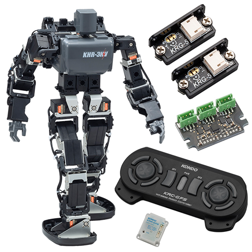 KHR-3HV(Ver.3.1)に、無線コントローラーやジャイロセンサーなど大会参加に欠かすことの出来ない商品を全てセットにしました。予備バッテリーも付属しているので、長時間楽しめます!